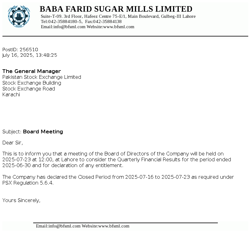 Board Meeting at 07-Dec-2025
