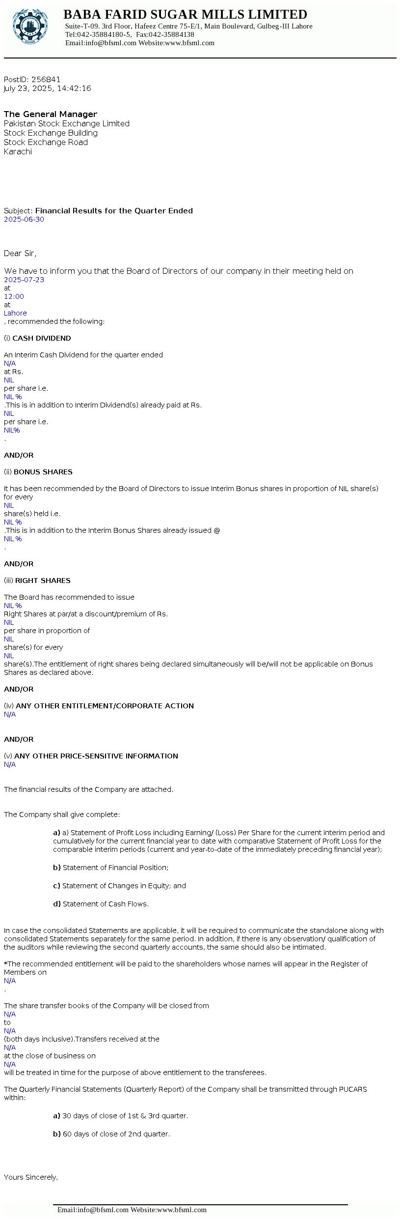 Financial Results for the Quarter Ended 2025-06-30