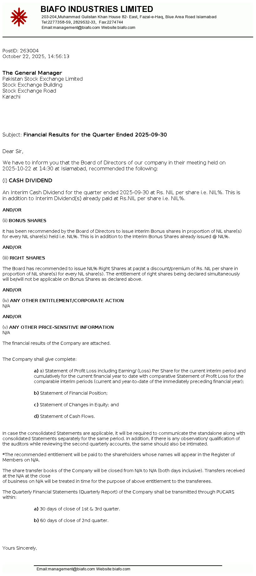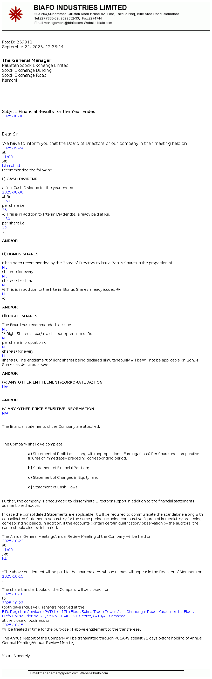 Latest Dividend