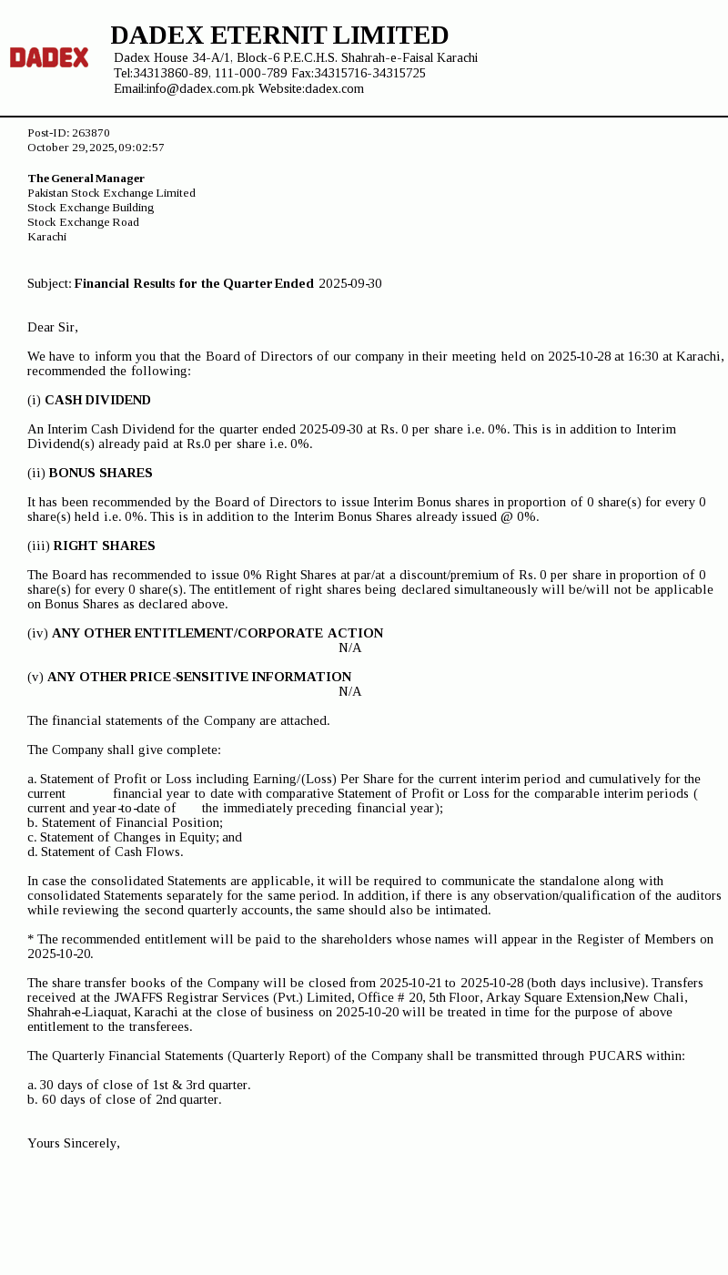 Latest Dividend