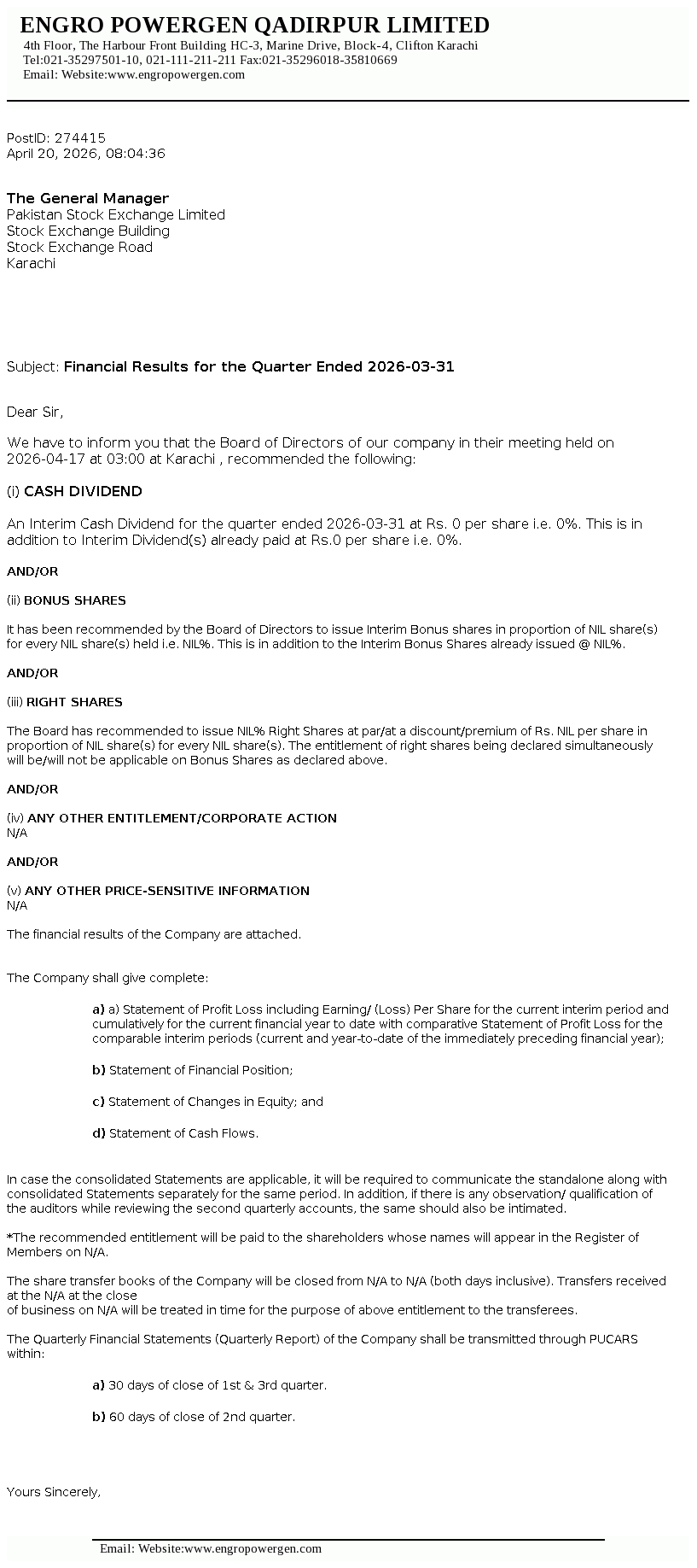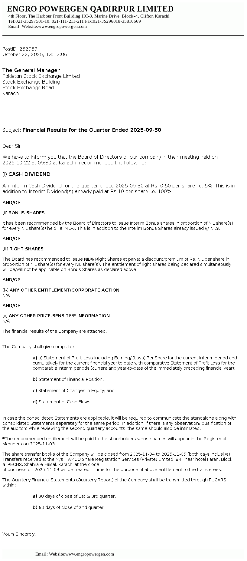 Latest Dividend