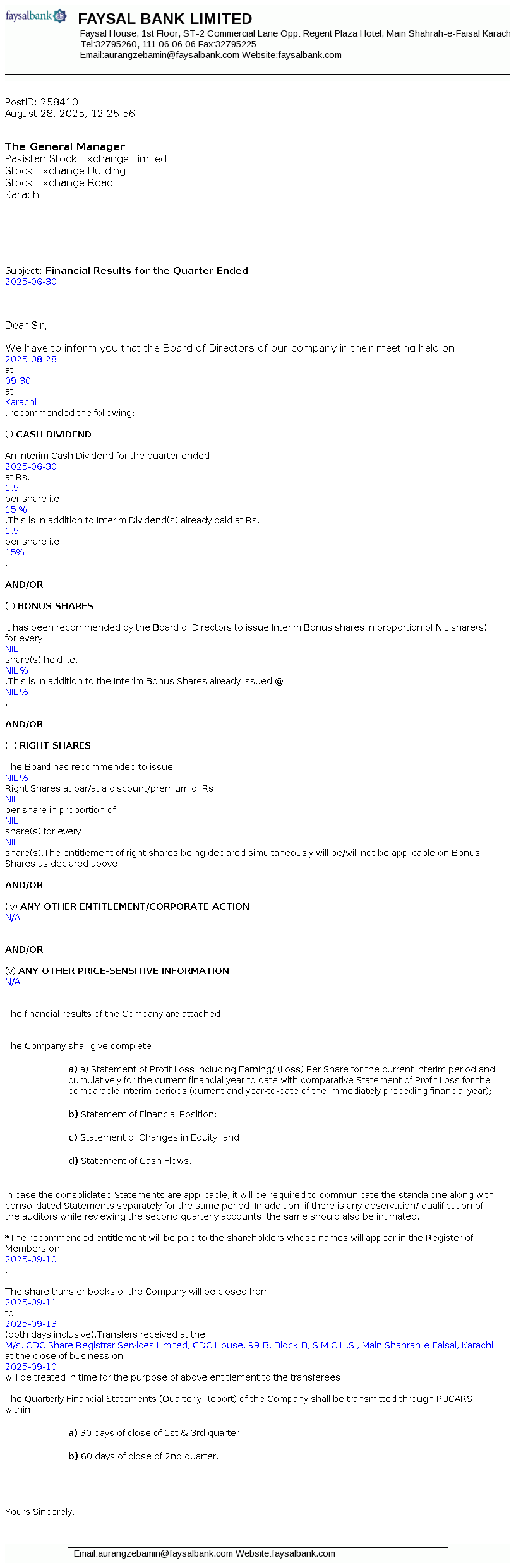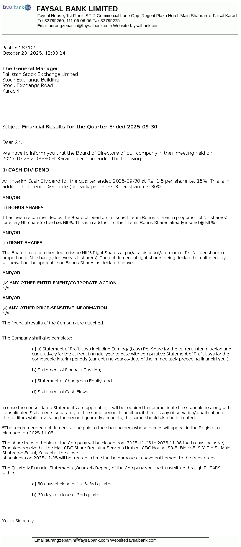 Board of Directors Meeting of Faysal Bank Limited at 12-Dec-2025