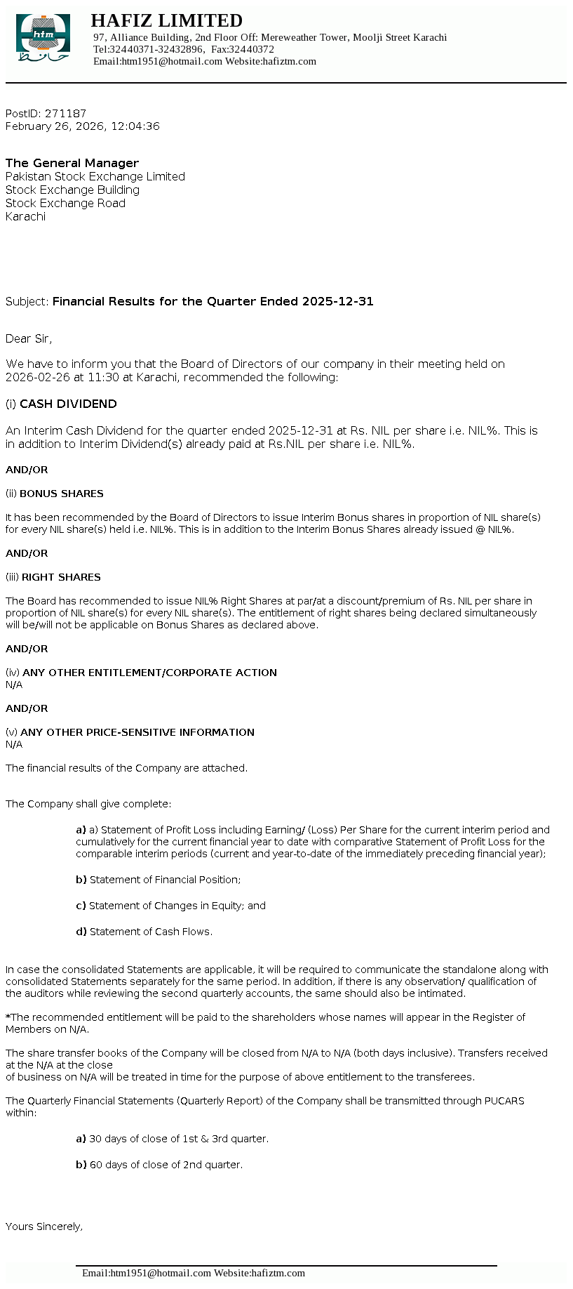Latest Dividend
