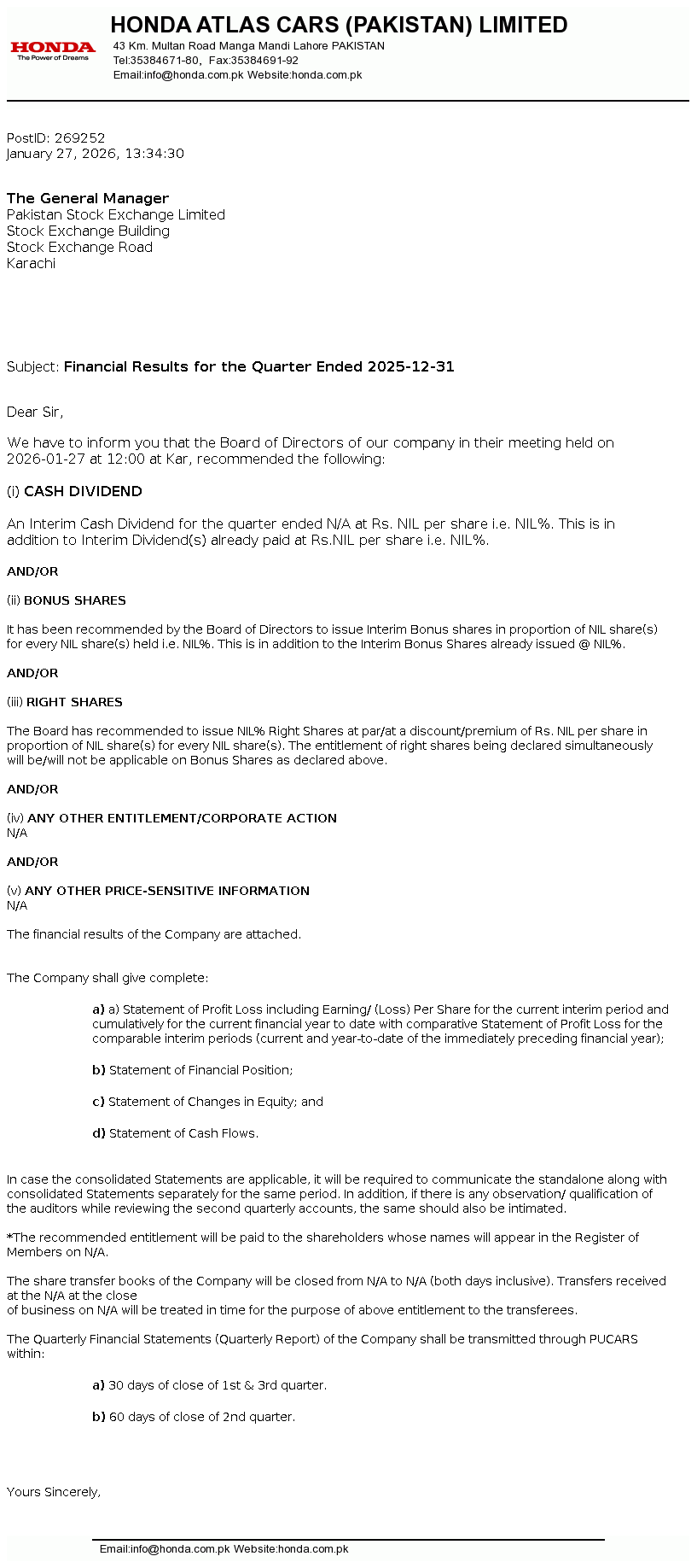 Latest Dividend