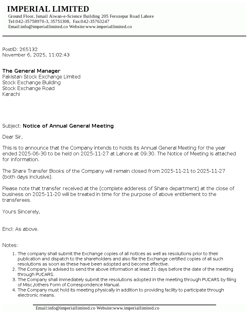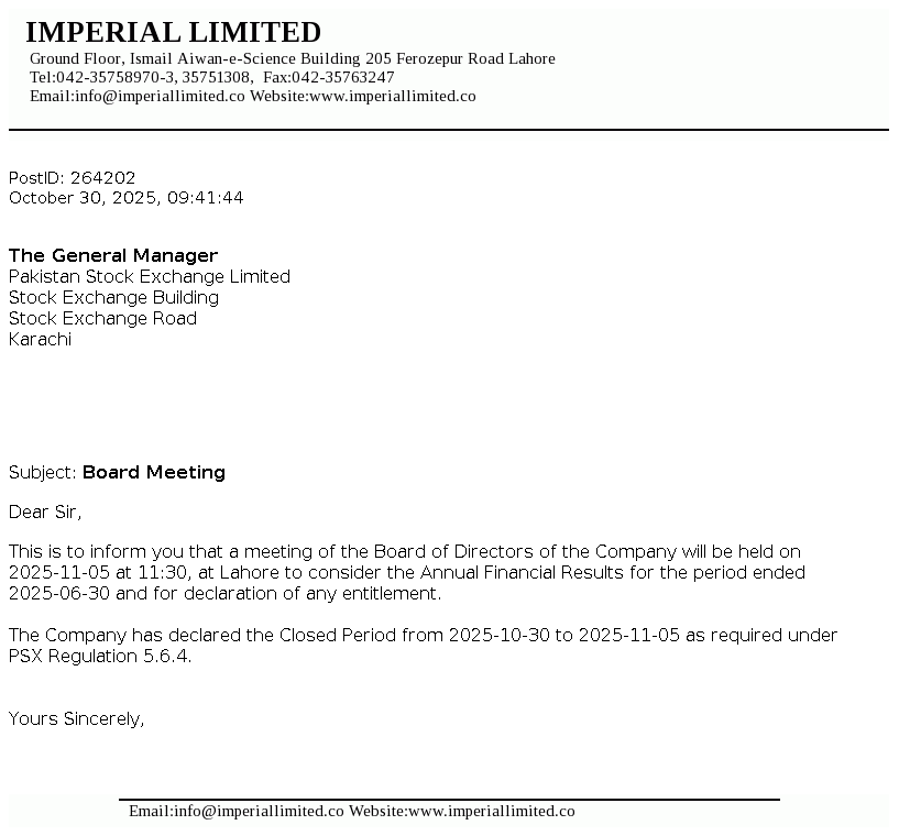 IML | Imperial Limited Financial Results for the Year Ended 30-06-2025