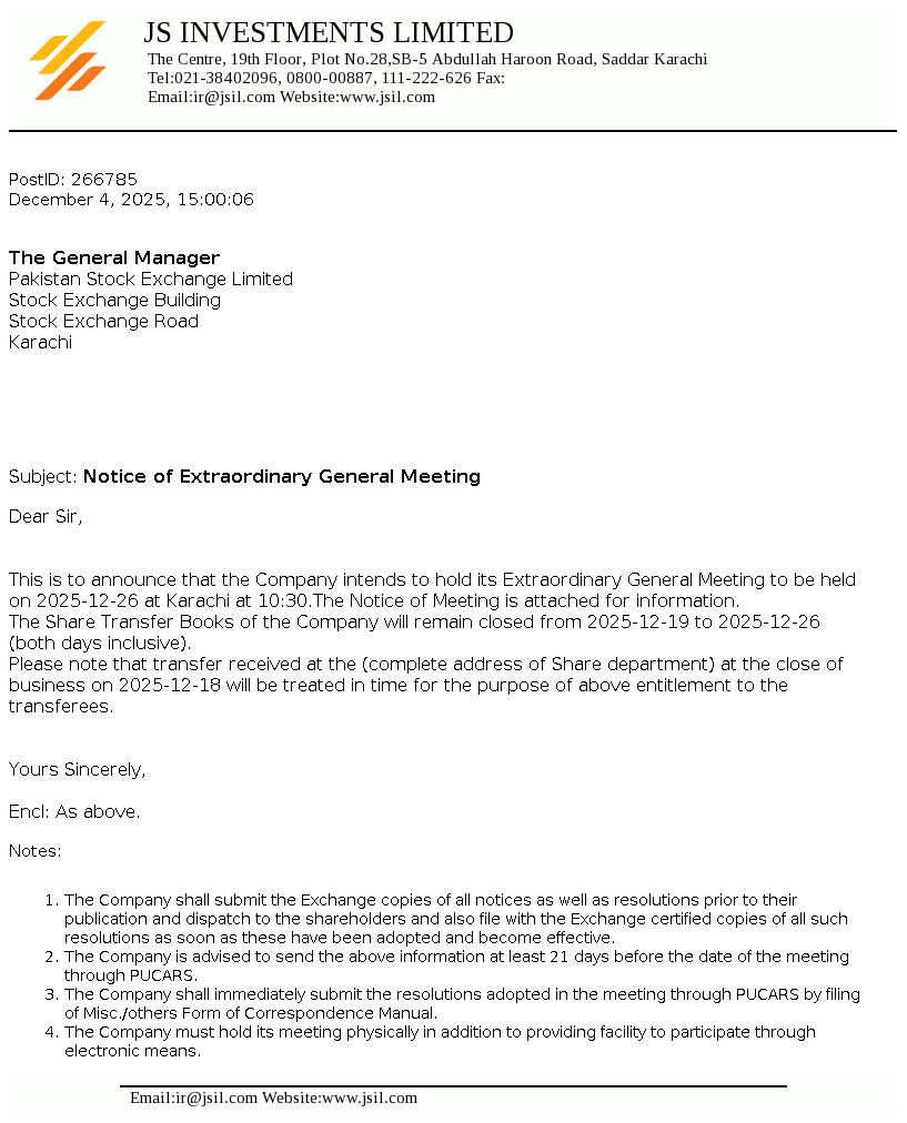 Notice of Extraordinary General Meeting