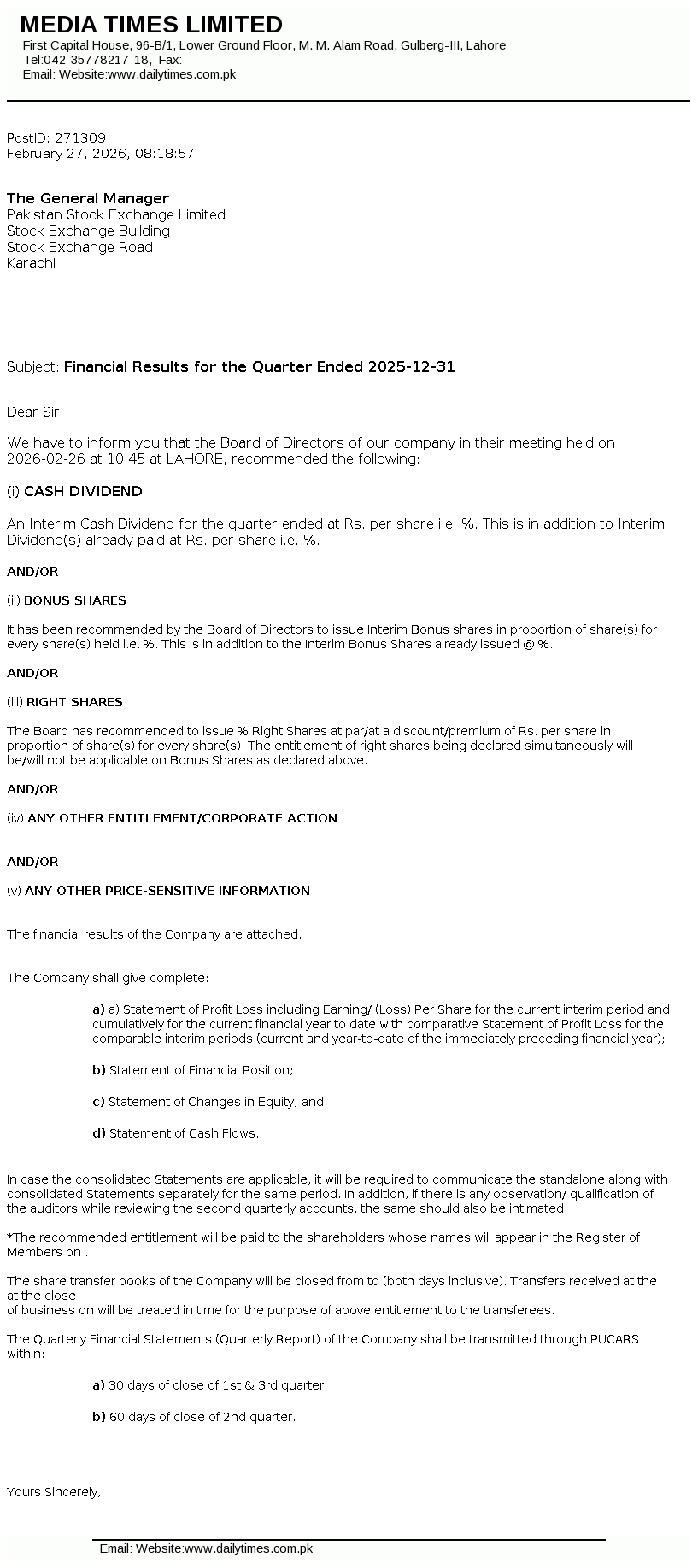 Latest Dividend
