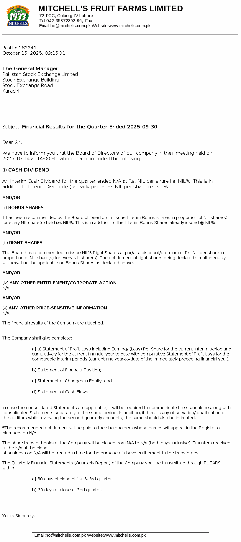 Latest Dividend
