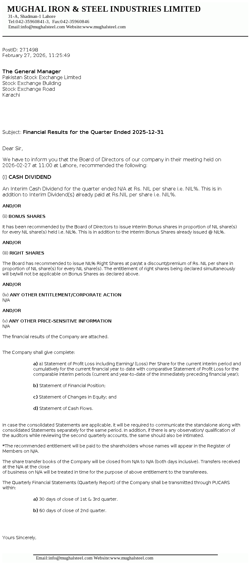 Latest Dividend