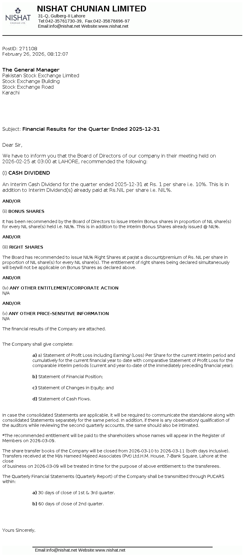 Latest Dividend