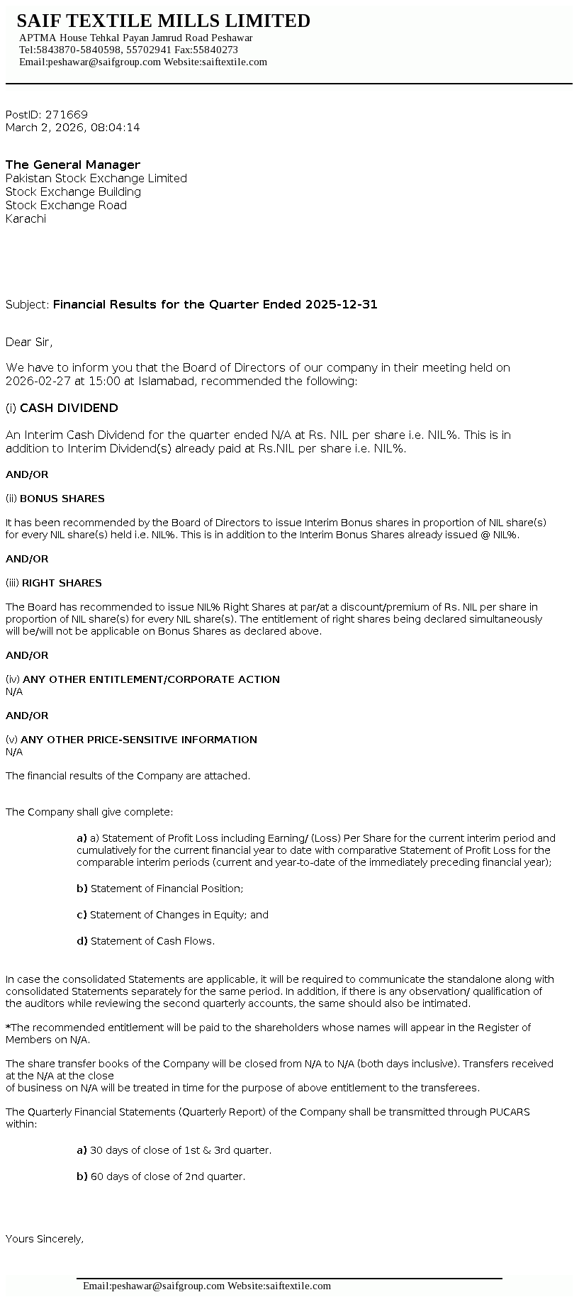 Latest Dividend