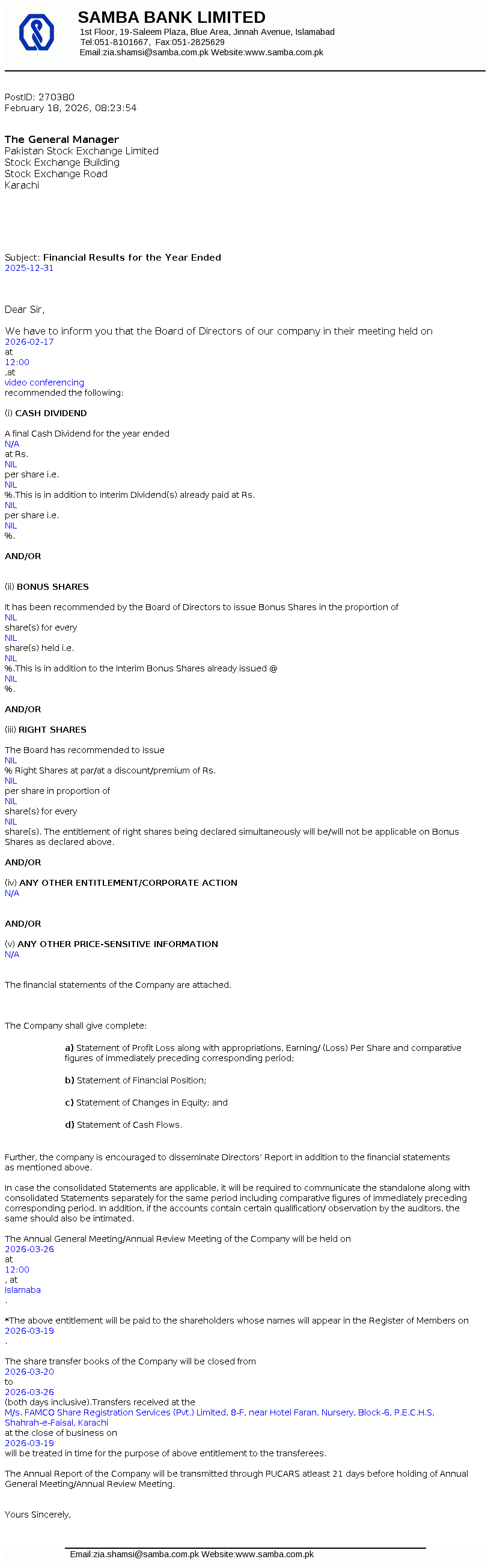 Latest Dividend