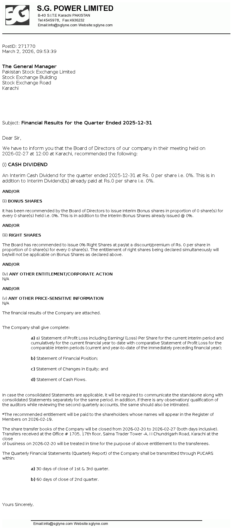 Latest Dividend