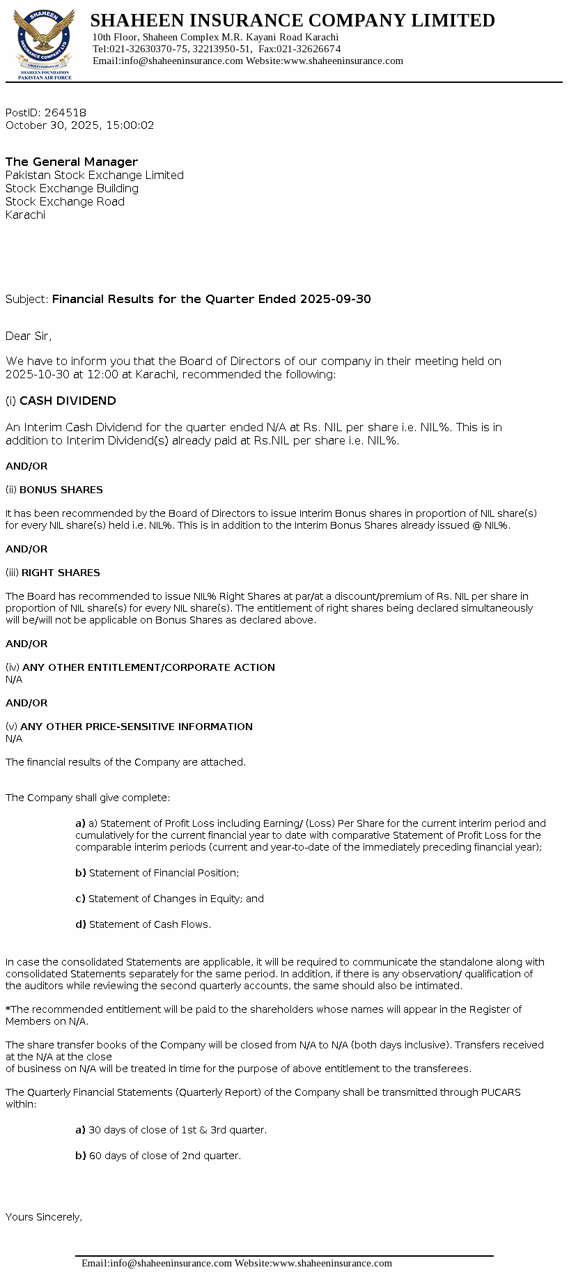 Financial Results For The Quarter June 30,2025