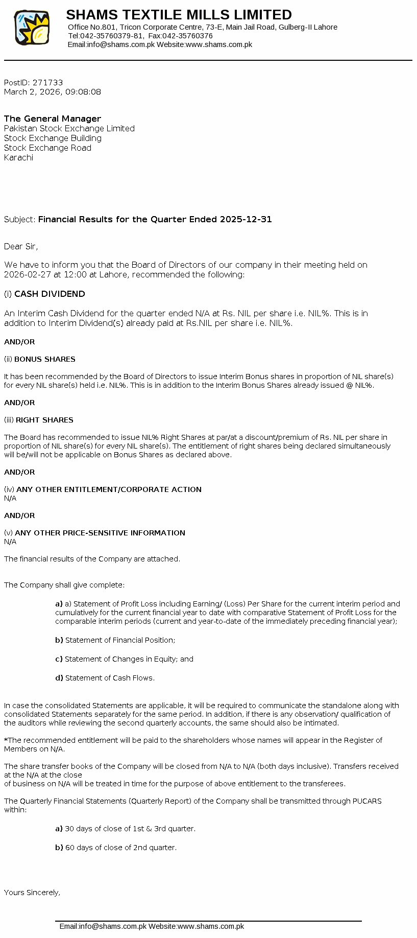 Latest Dividend