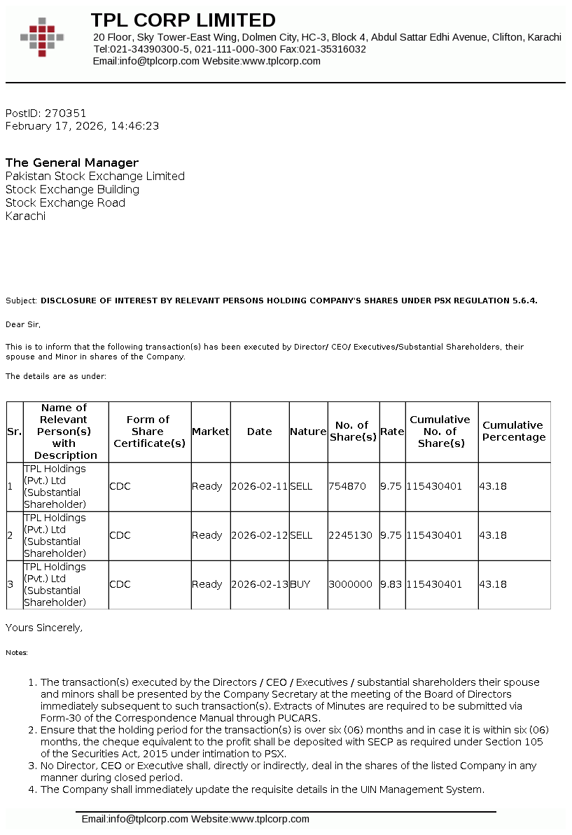 Right: Right Shares in prop. of 12.64% PKR 10/ per share