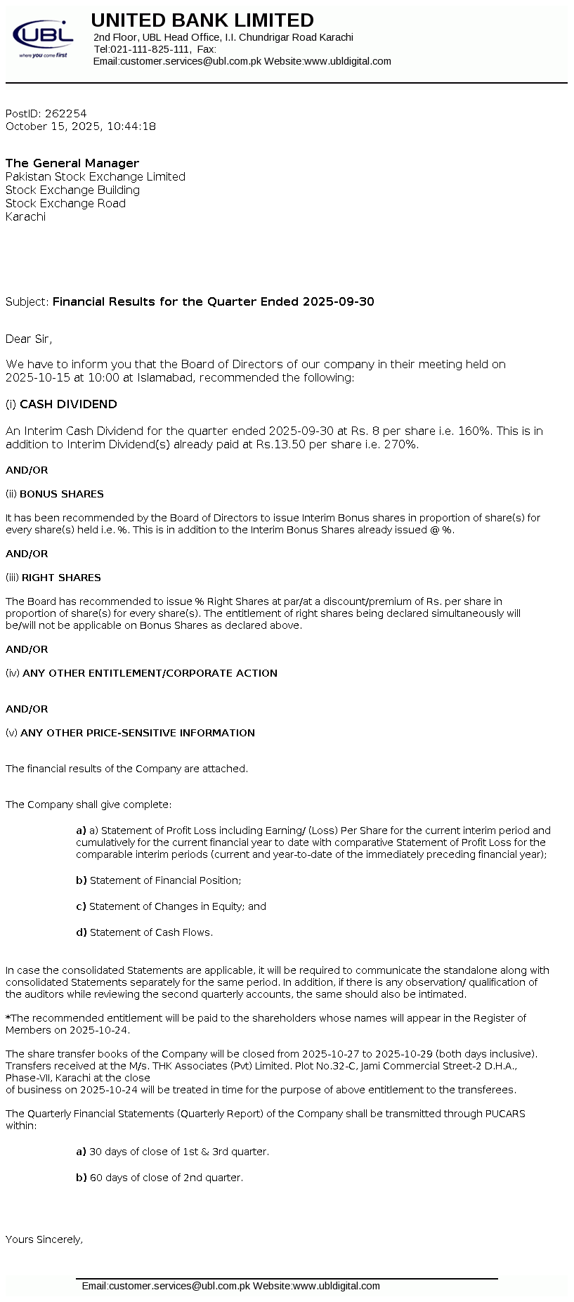 Note: Actual EPS 3Q25 is Rs. 39.33 calculated from actual New paid up capital; announced EPS 3Q25 of Rs. 39.55