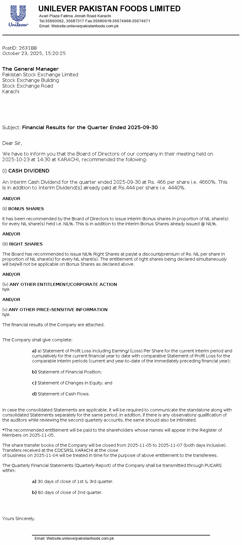 Latest Dividend