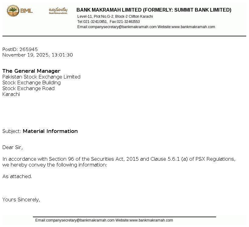 With regard to the Scheme of Arrangement for the restructuring of Bank Makramah Limited, as disclosed through our earlier disclosure dated November 19, 2025