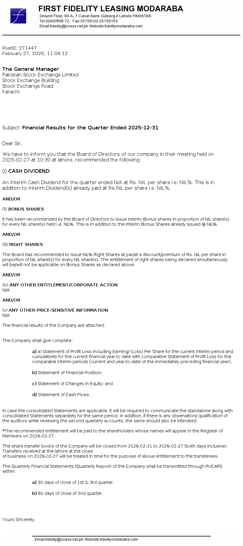 Latest Dividend