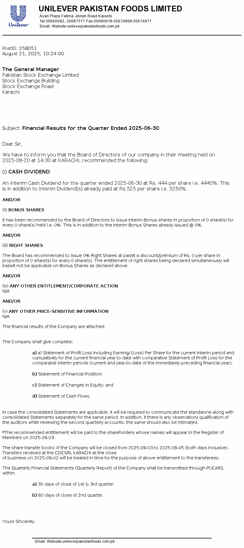 Latest Dividend